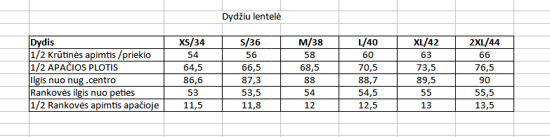 | Dydis | M, L, XL, 2XL |